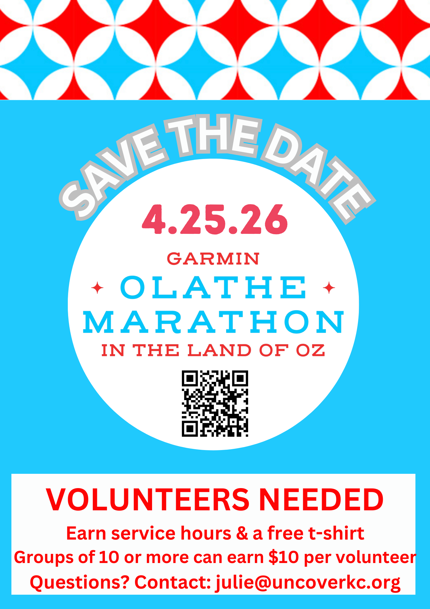 Register for your shift and if you have any questions, just let us know. Thank you for your support of the Garmin Olathe Marathon.