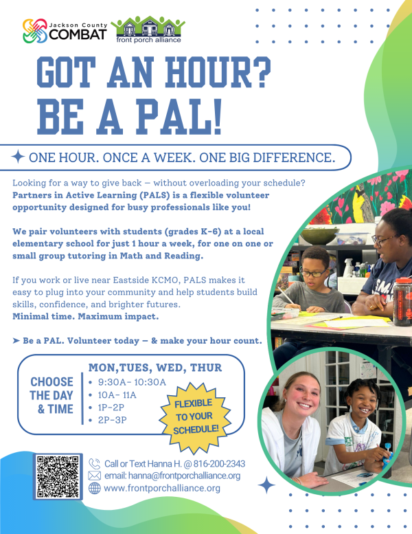 We pair volunteers with students (grades K-6) at a local elementary school for just 1 hour a week, for one on one or small group tutoring in Math and Reading.